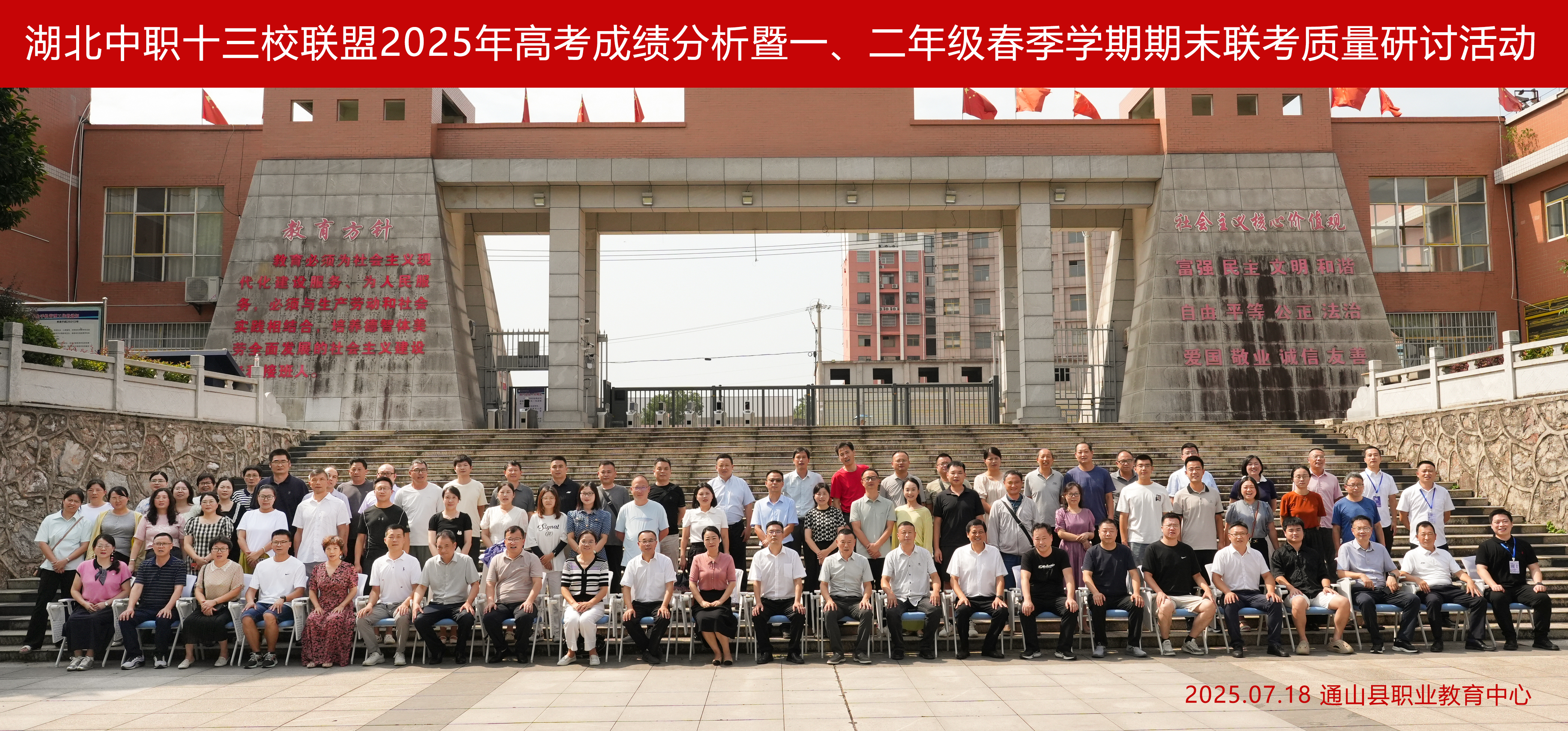 学海扬帆志气昂,十三校联盟聚一堂。共谋发展寻佳策,同绘蓝图谱新章!2025年7月18日,湖北中职十三校联盟2025年高考成绩分析暨一、二年级春季学期期末联考质量研讨活动在通山县职业教育中心成功举办。