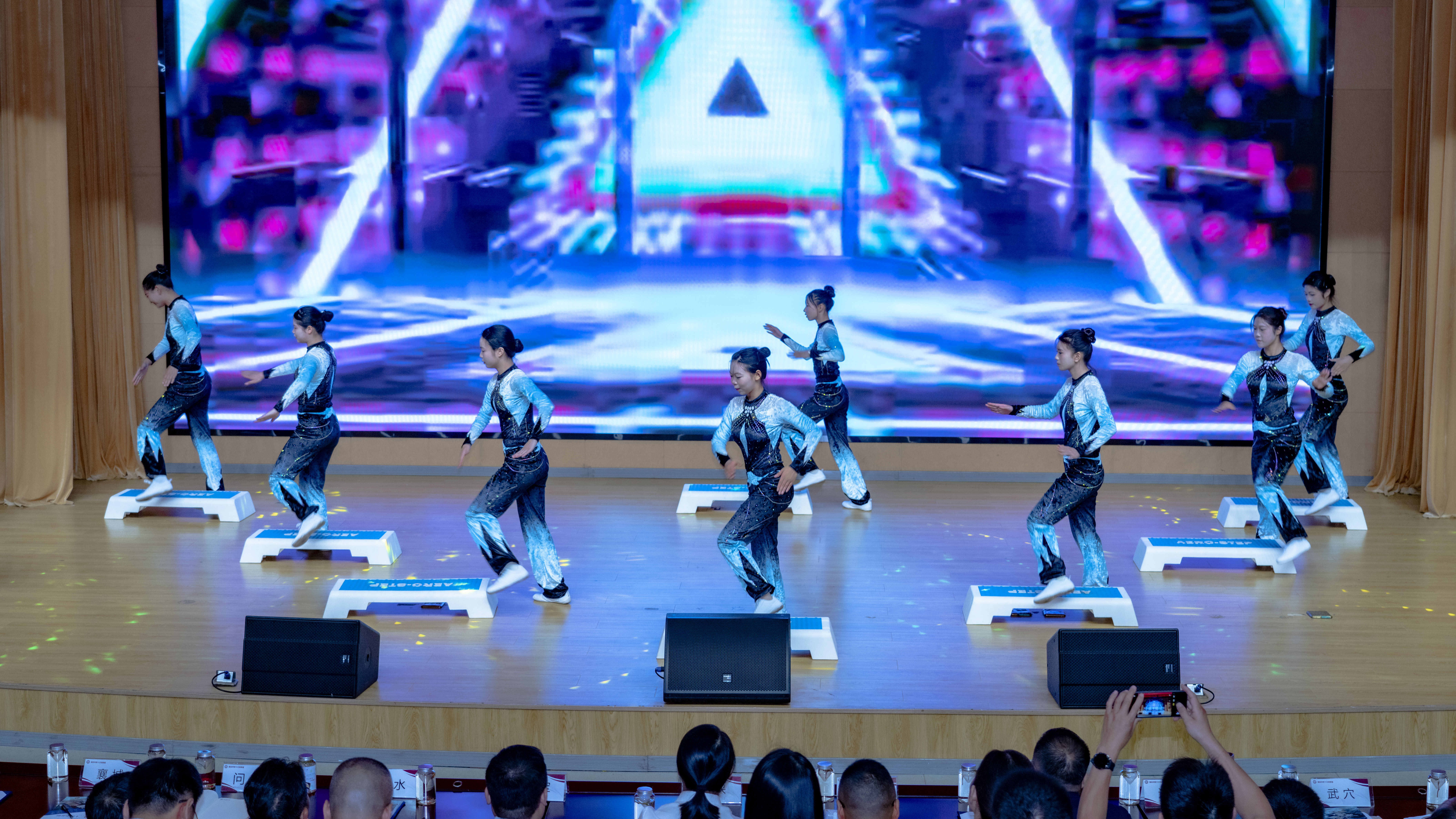 一段充满活力与热情的开场表演,瞬间点燃了全场气氛,赢得了观众的热烈掌声。这是由天门市职业技术教育中心的同学们为大家精心准备的开场舞蹈《领航》与《啦啦操》。伴随着《领航》深情而恢宏的旋律,同学们以舒展优美的舞姿,表达了对伟大时代的深情礼赞和对未来征程的美好憧憬。随后,节奏明快、动感十足的啦啦操、踏板舞瞬间将现场气氛推向高潮,彰显了职教学子多才多艺、全面发展的综合素质。