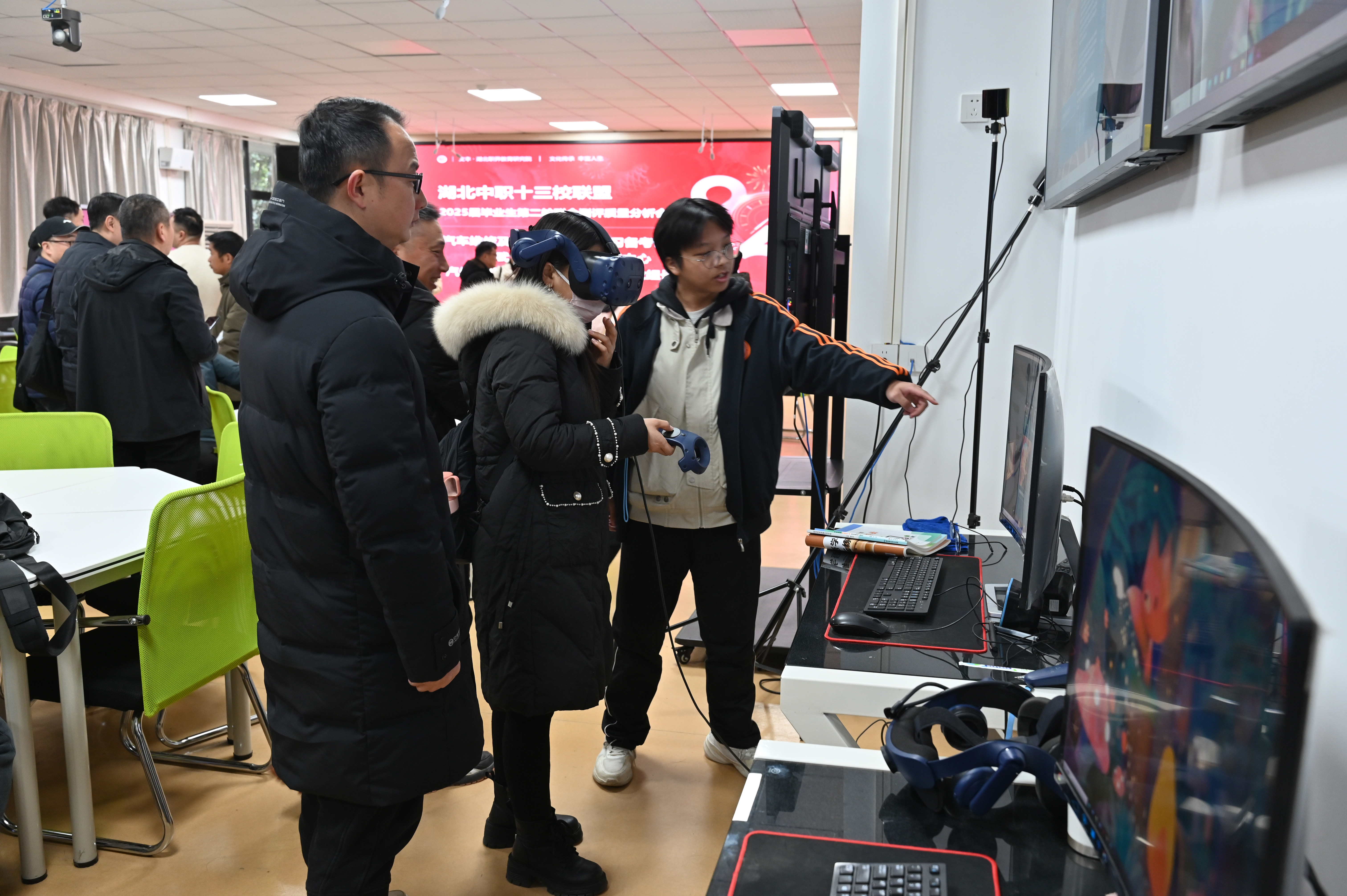 武汉市第一职业教育中心实训中心主任宋晓峰和教务处主任吕柏松分批带领参会人员到学校实训楼参观,通过实地观摩与深入交流,参会人员对该校实操教学的模式、设施及成果有了更多直观且全面的认识。