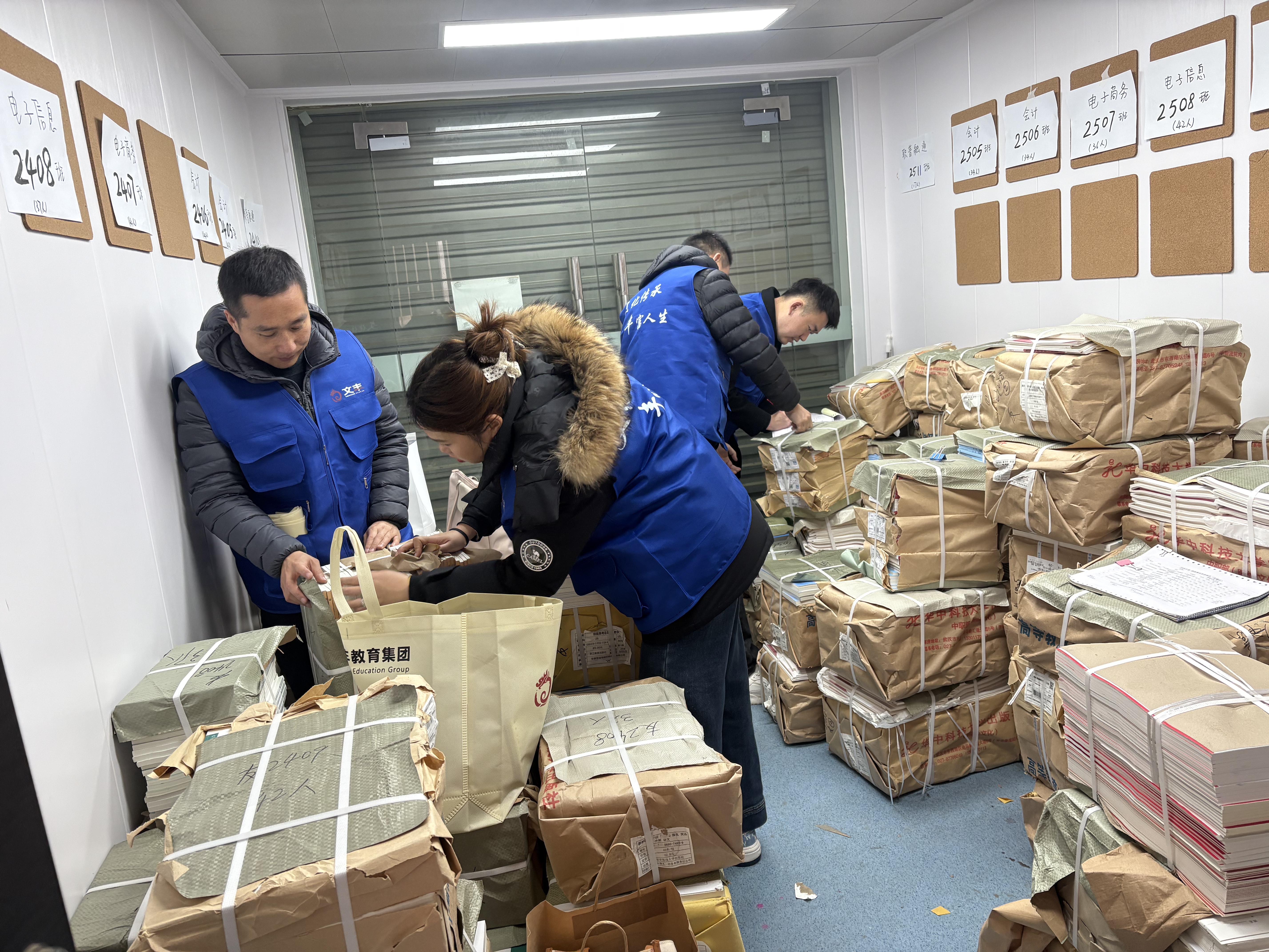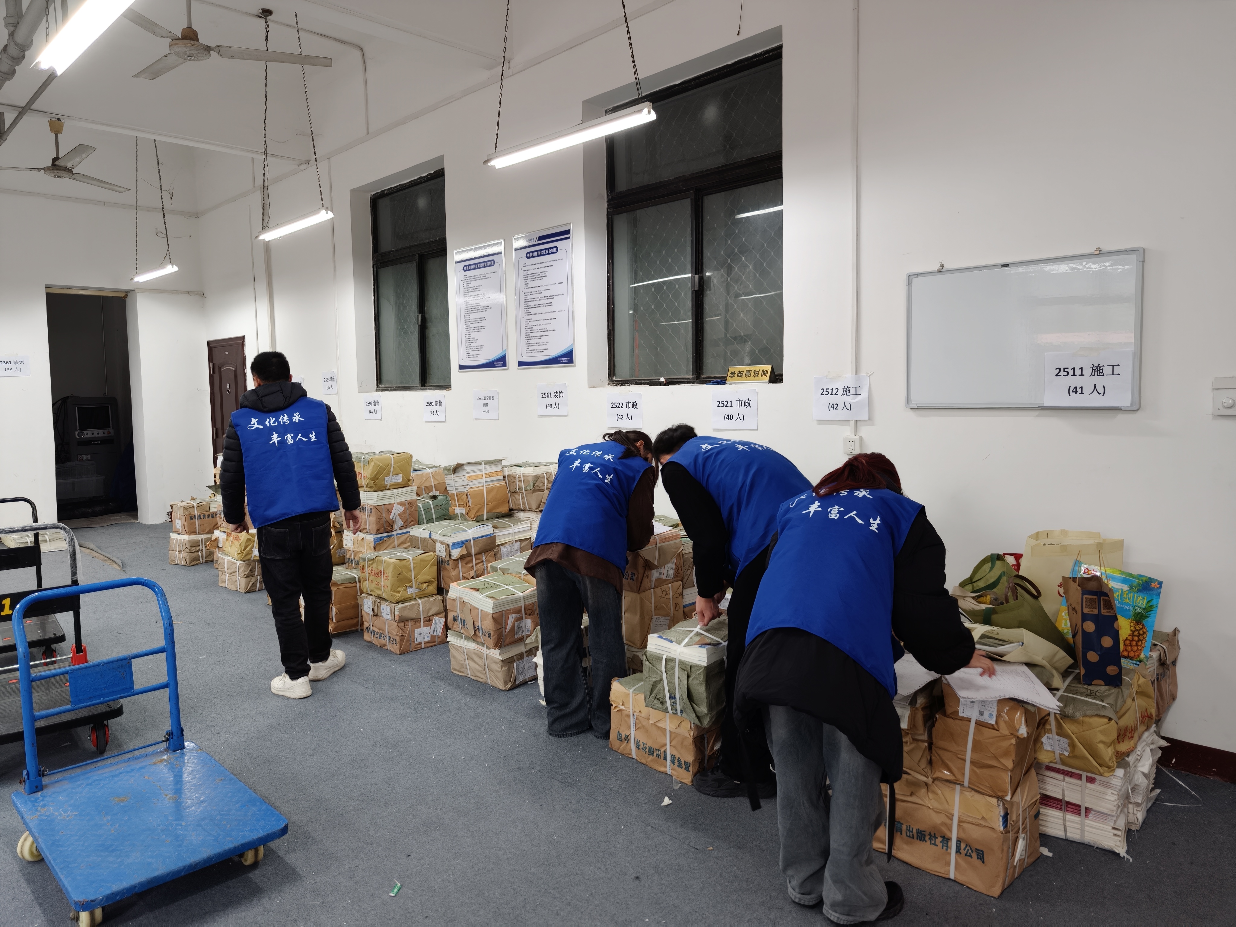 为确保教材准时、精准送达多所院校、多个专业、大批学生手中,公司上下高度重视、提前筹备、周密部署,与各校反复沟通、细致确认需求。教材正式发放前,文丰团队便进驻校园,逐一清点核对品种与数量,并根据各校专业、班级情况量身定制配送方案,高效、圆满完成教材发行工作。