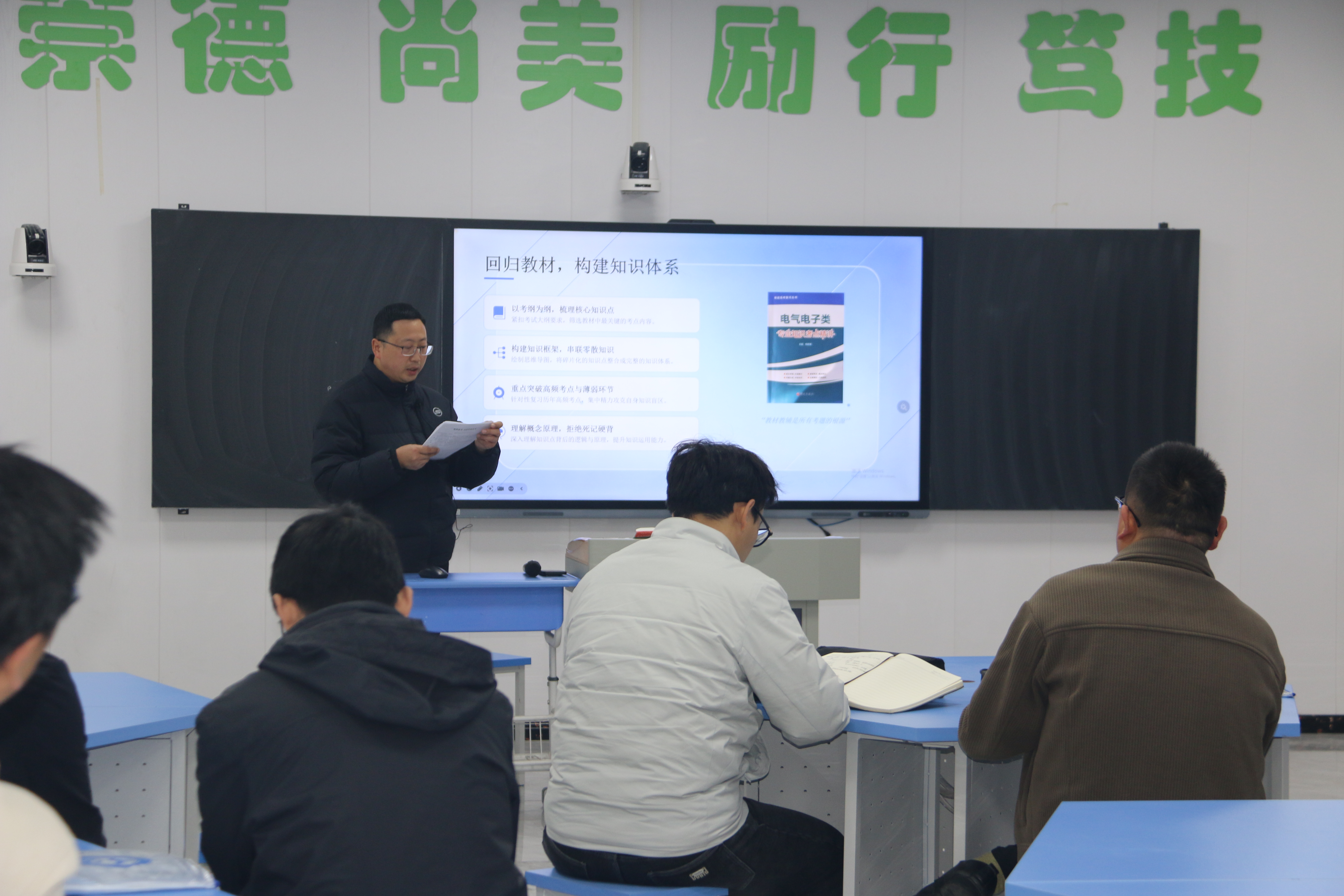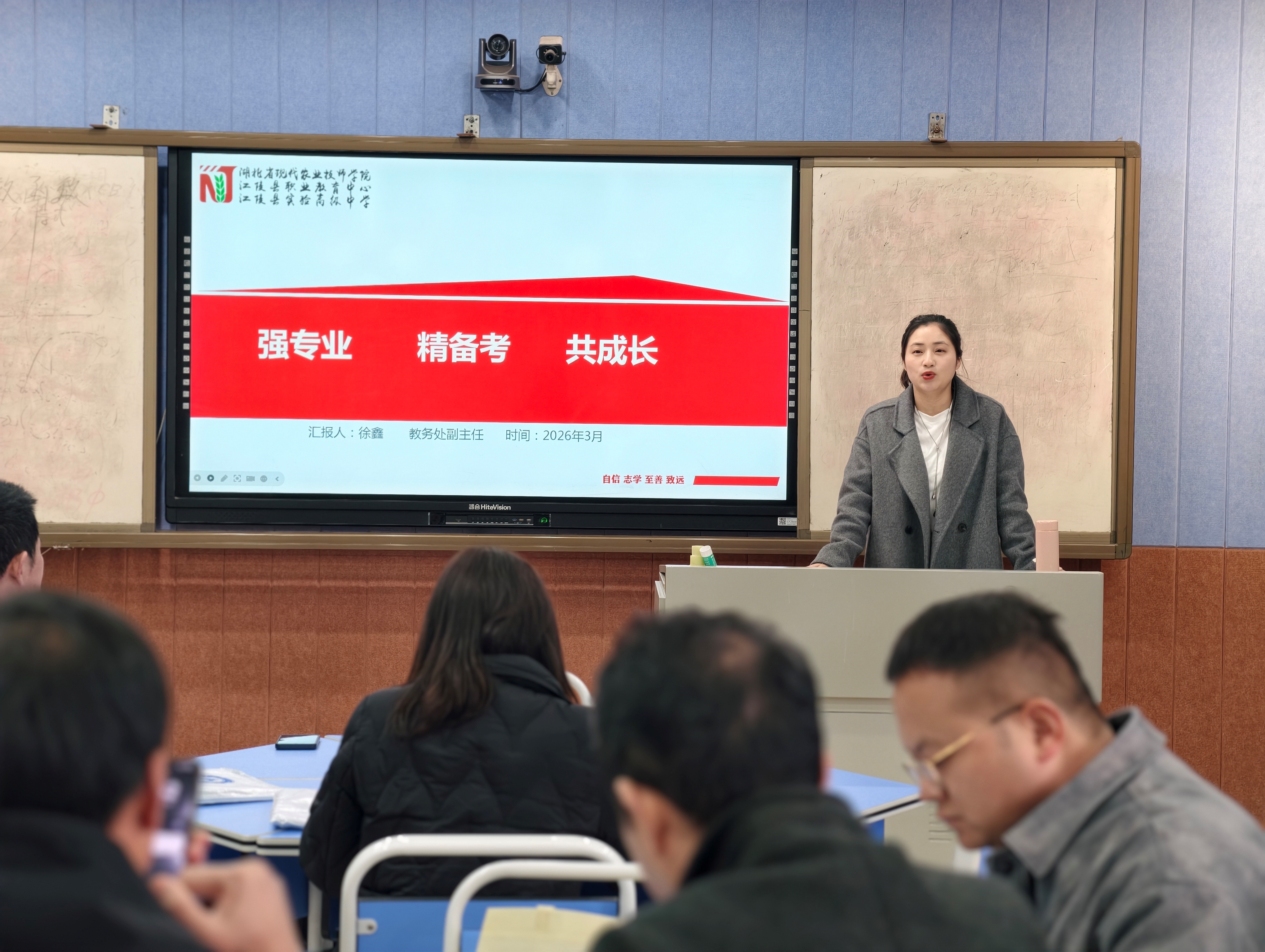 十堰高级职业学校汽车维修专业主任李怡鹏进行汽车维修专业建设研讨。李主任强调:要把细节做到极致,要让改变真正发生!从班级管理、教学规划、理论教学三方面进行分享:班级管理上推行全员住宿抢时间、每日讲题激动力、分层施策抓针对;教学规划坚持三年系统布局、高三把关精准赋能;理论教学运用生活化类比、手绘简图、微专题突破等方法,让课堂出实效、知识记得牢。