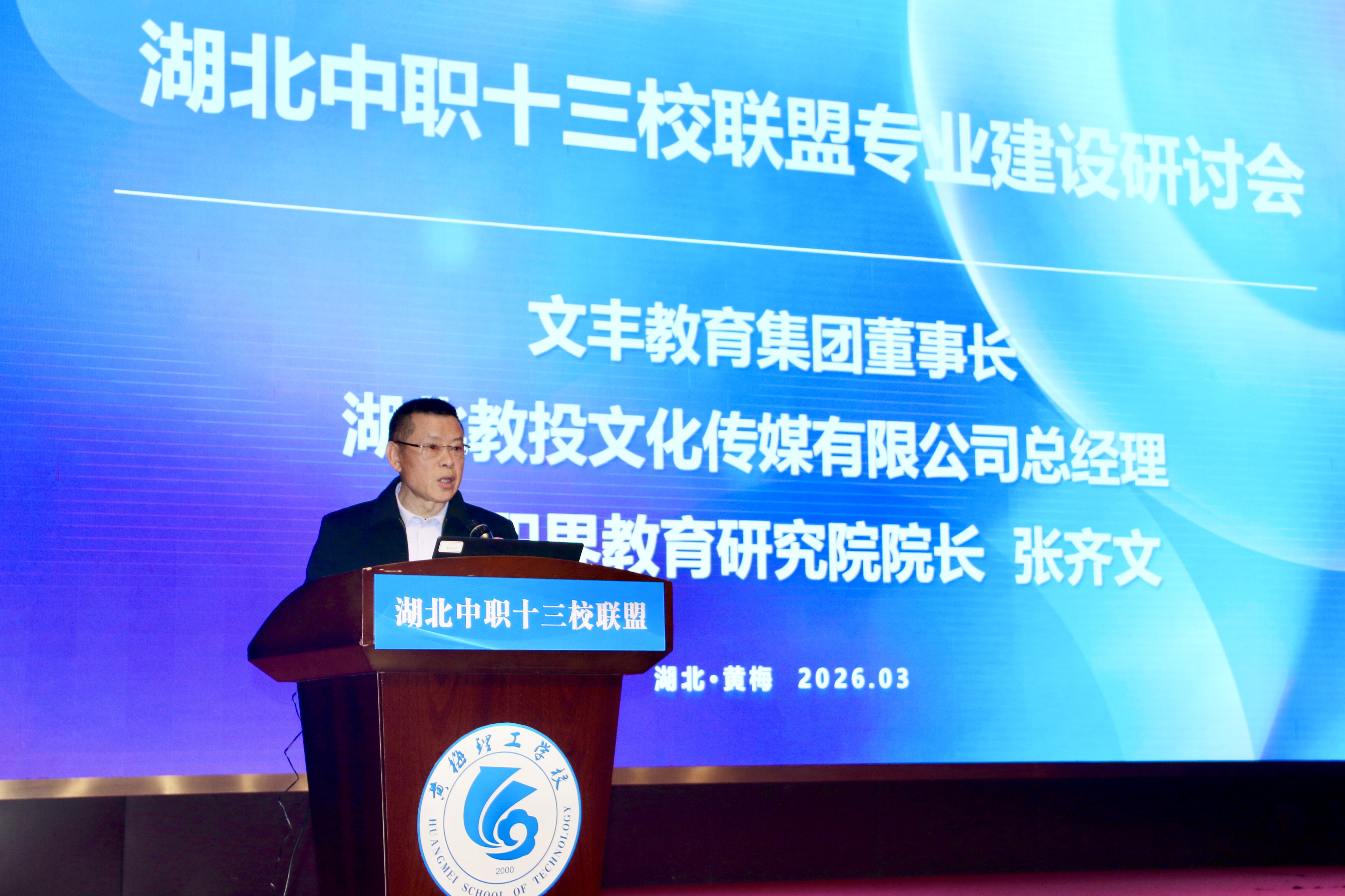 作为湖北中职十三校联盟的重要推动方,文丰教育集团董事长、湖北教投文化传媒有限公司总经理、湖北职界教育研究院院长张齐文发表了致辞。张总首先对黄梅理工中等专业学校取得的优异成绩表达了祝贺,对湖北中职事业做出的贡献表达了感谢。张总强调,教育部2026年2月印发意见中提出,到2027年建成中职、高职、职业本科贯通的先进标准体系,重点实施高技能人才集群培养计划,建立“三组长”牵头机制,统筹专业、课程、教材、教师、实习实训全链条改革 ,将中职纳入技能型社会建设总体布局,进一步确立了中职教育的基础性。